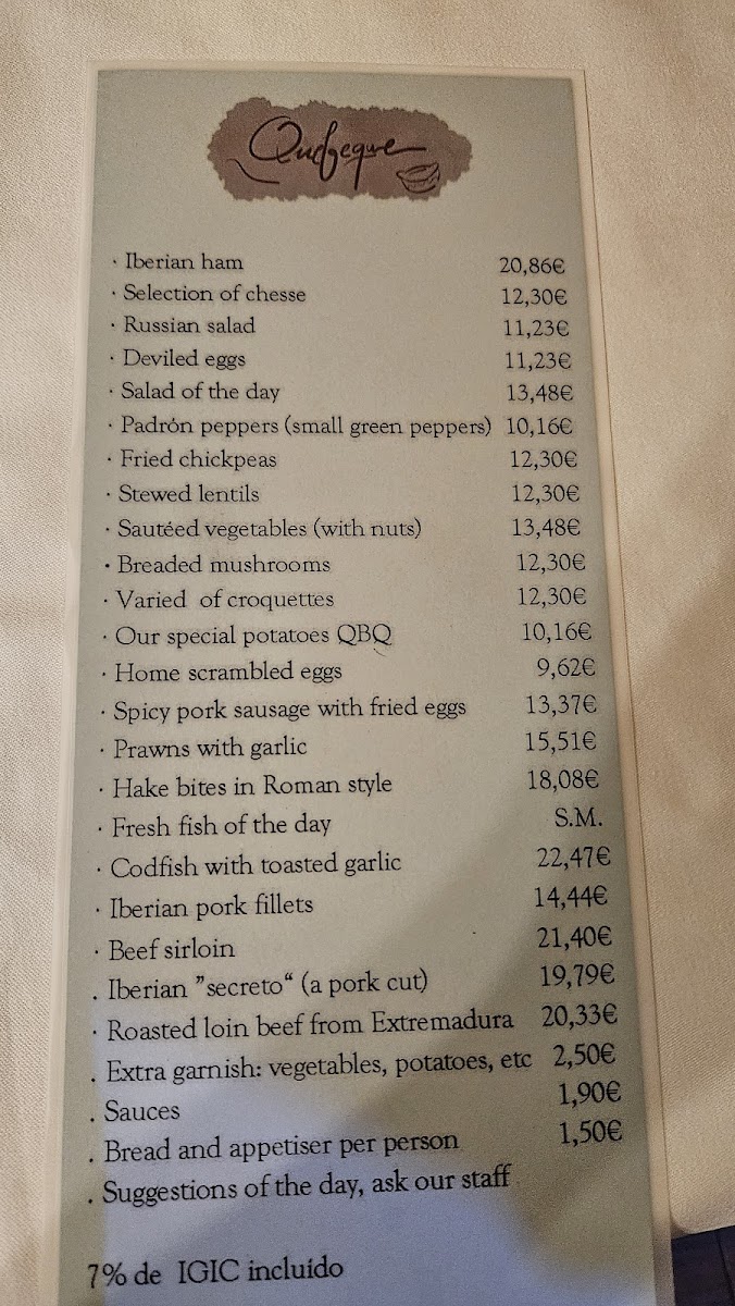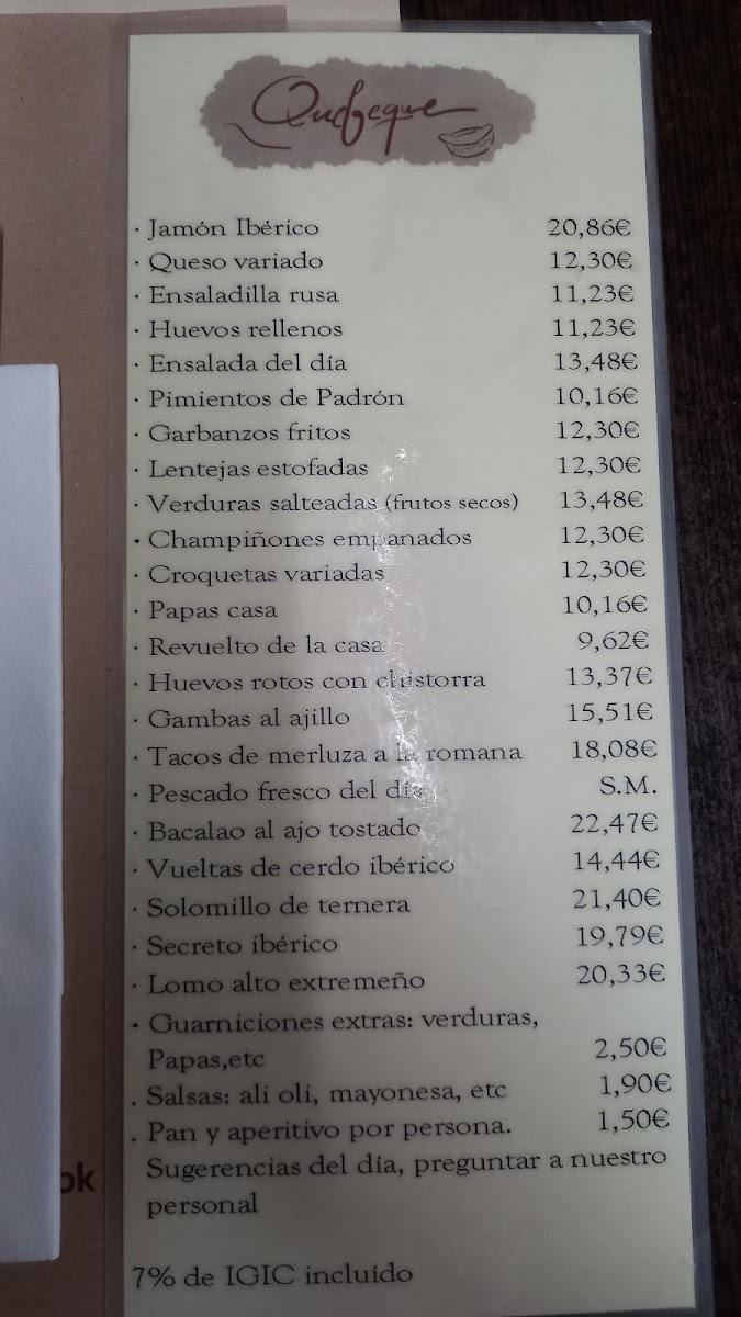 Whether you choose to dine on the cozy outdoor terrace or the immaculately clean indoor space, you're guaranteed friendly service that goes above and beyond, ensuring all guests feel at home. With an impressive focus on gluten-free options, including beer, Restaurante Quebeque caters seamlessly to dietary preferences. Each bite not only delights the palate but also reflects the dedication and pride this establishment embraces. Treat yourself to a delightful culinary experience that resonates with the heart of Canarian flavor; it's an affair your taste buds won’t soon forget!